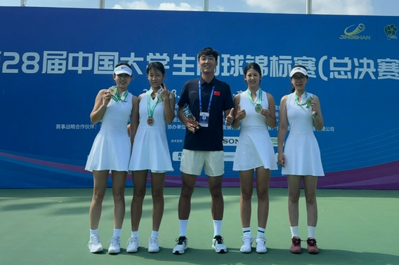 近日,第28届中国大学生网球锦标赛(总决赛)暨第23届中国高校“校长杯”网球比赛在湖北京山举行。我校网球队斩获全国甲组女子团体季军,杨书语勇夺全国女子甲组单打亚军,创造了我校球类体育赛事历史最好成绩。
