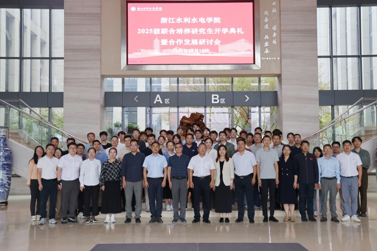 10月18日,浙江水院2025级联合培养研究生开学典礼暨合作发展研讨会在钱塘校区举行。副校长沈自力致辞。2025级全体联合培养研究生、2024级研究生代表,三所联培高校的研究生院领导,学校学科建设与研究生管理处负责人,以及各校相关学院负责人、导师代表、科研秘书等参加。